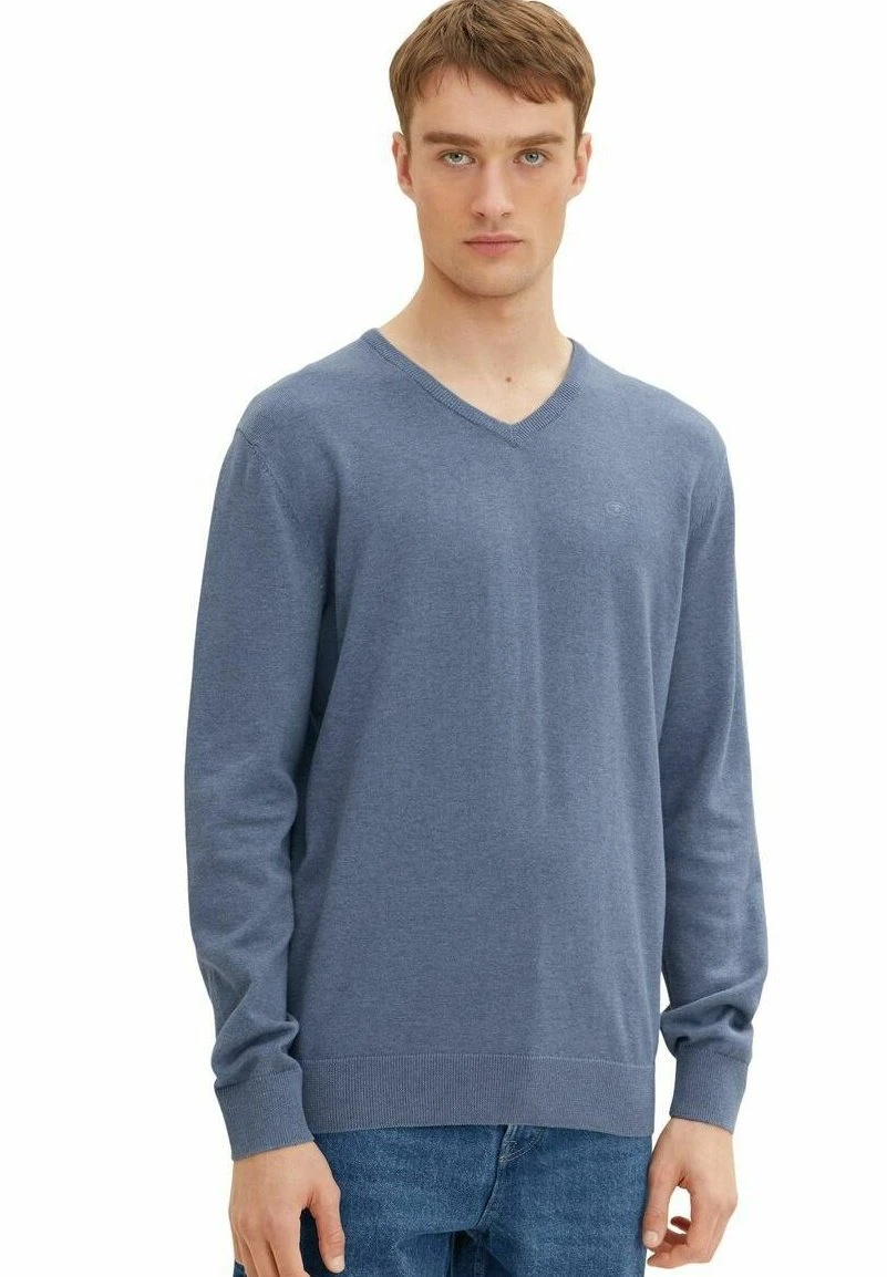 Tom Tailor Basic V Neck – Trui – Greyish Mid Blue Melange