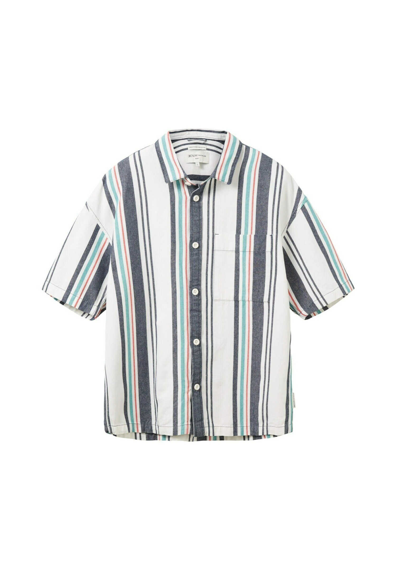 TOM TAILOR Denim Gestreiftes Kurzarm – Overhemd – Wool White Multicol Big Stripe