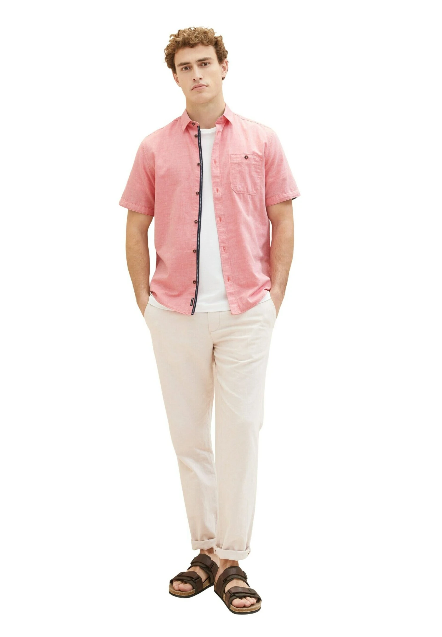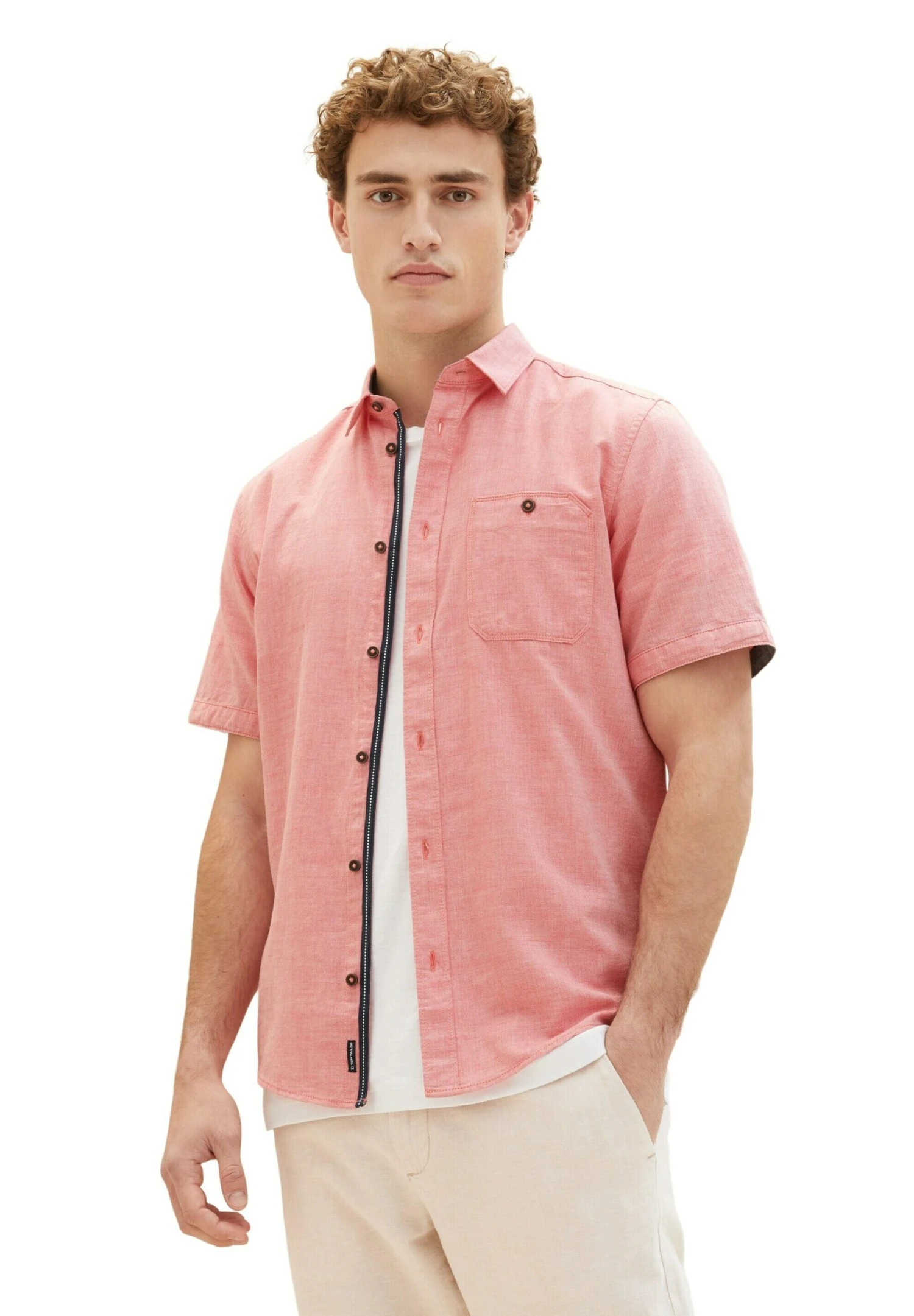 Tom Tailor Kurzarm Mit Brusttasche – Overhemd – Red Herringbone Structure