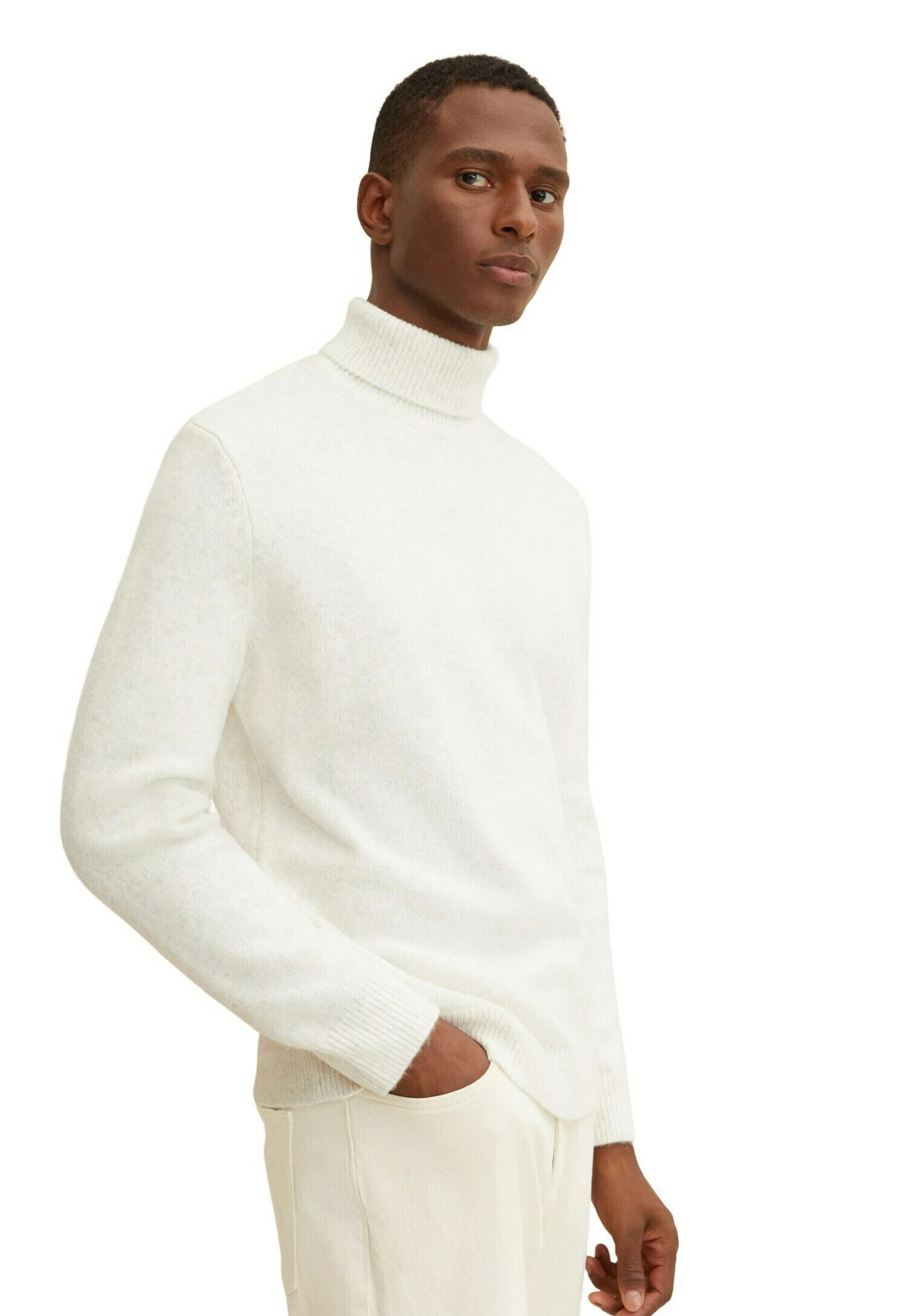 Tom Tailor Melierter Rollkragen- Trui – Nice Off White Melange