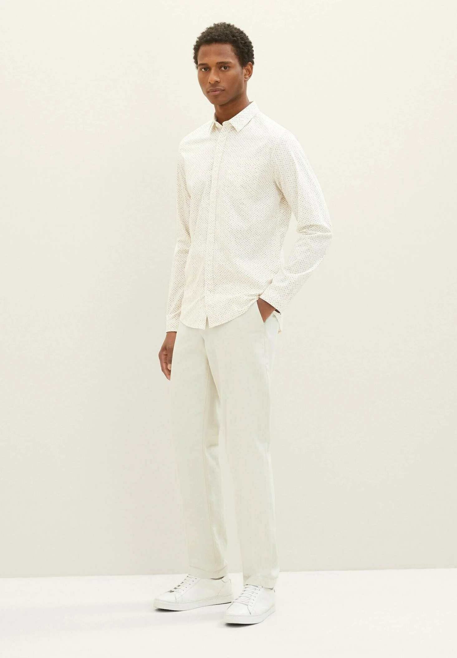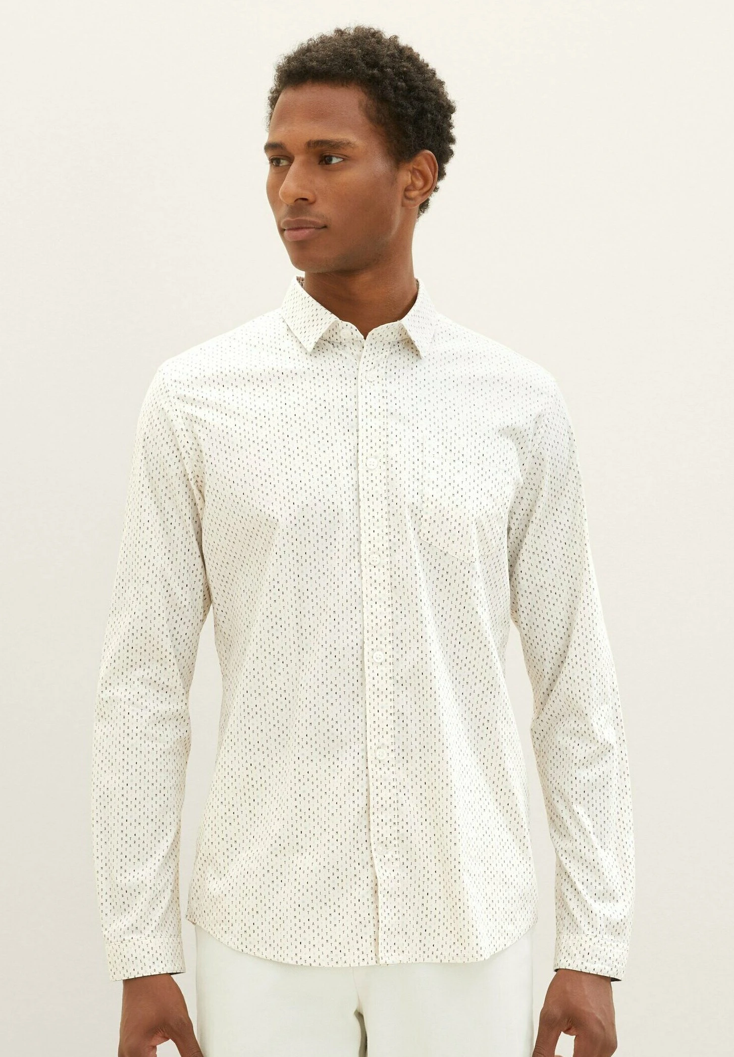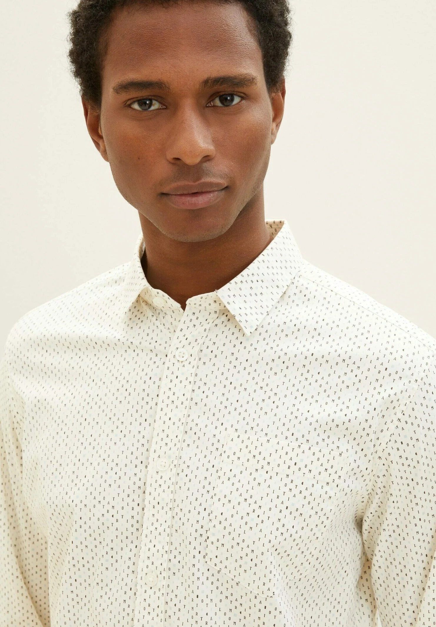 Tom Tailor Mit Allover-Print – Overhemd – Beige Minimal Wording Design